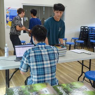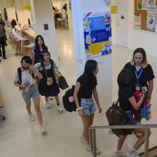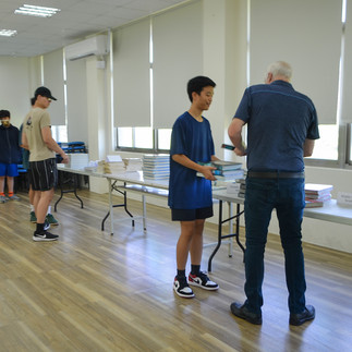 今天是開學日,學生們回到校園領取課本與置物櫃鑰匙。學生會為中、高中部安排了有趣的破冰活動,小學部則由老師帶領歡樂互動。歡迎大家回到學校,一起展開新學期的學習旅程!